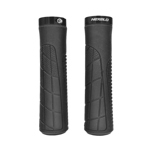 Chwyt kierownicy gumowy, skręcany aluminiowym pierścieniem z jednej strony na klucz imbus 3mm, długość 135 mm, montowany na kierownicę o zewnętrznej średnicy 22,2mm, w komplecie korki z tworzywa sztucznego, kolor czarny