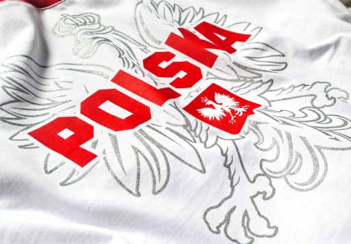 Koszulka wykonana jest w kroju raglan, z kontrastujących ze sobą dzianin w naszych barwach narodowych. Rękawki i kołnierzyk to kolor czerwony, natomiast korpus jest biały. Prezentowany wzór to idealna propozycja dla każdego kto kocha Polskę i chce zaakcentować swoje przywiązanie do swojego kraju. Duma, jaką wyrażają narodowe barwy i symbole, a zarazem prostota i bezpośredni przekaz, nadają im niepowtarzalnego charakteru.