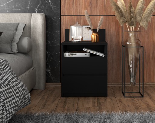 Prezentujemy Szafkę nocną Czarną z 2 szufladami oraz półką, idealną do Twojego sypialni.