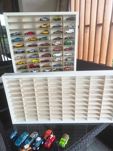 Wyjmując pojedyncze półeczki, mamy możliwość powiększenia przegródki jeśli posiadamy w kolekcji również większe autka .