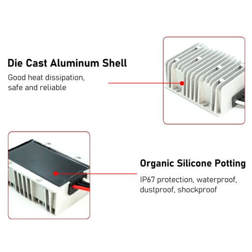 4. WYTRZYMAŁA I CHRONIONA KONSTRUKCJA: Dzięki całkowicie uszczelnionej obudowie działającej jako radiator, konwerter ten jest wodoodporny, odporny na wstrząsy i pyłoszczelny, co zapewnia długotrwałą trwałość.