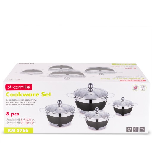 Stalowe GARNKI NA INDUKCJĘ zestaw GARNKÓW z pokrywkami 8 el KAMILLE KM-5766