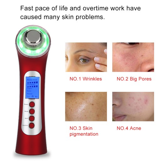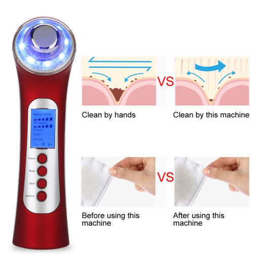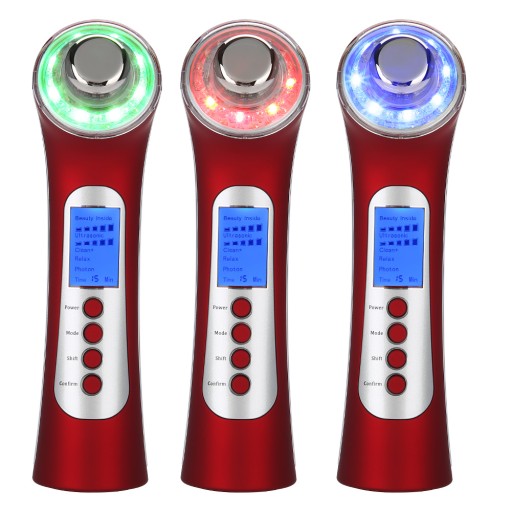 Ultradźwiękowe urządzenie kosmetyczne 5 w 1 Nano Masażer do terapii fotonowej Pielęgnacja skóry Przeciwstarzeniowy (czerwony)