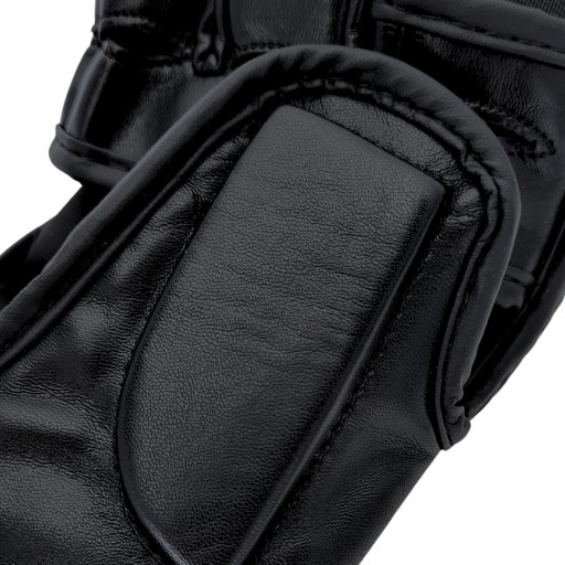 Rękawice MMA Rookie wykonane są z wysokogatunkowej skóry syntetycznej, co daje im długą żywotność i sprawia, że są łatwe w czyszczeniu. Od wewnętrznej strony posiadają podszewkę z przyjemnej w dotyku, oddychającej tkaniny, zapobiegającej poceniu się dłoni. Wypełnienie rękawic stanowi amortyzująca pianka, która absorbuje siłę uderzeń, chroniąc trenującego przed urazami dłoni. Dodatkowo zabezpieczony jest kciuk, na którym umieszczono dodatkowy panel z gęstej pianki. Zaokrąglony, anatomiczny kształt sprawia, że rękawice do MMA Rookie świetnie dopasowują się do dłoni. Zapięcie na długi rzep dodatkowo stabilizuje nadgarstek, zmniejszając ryzyko jego urazów.