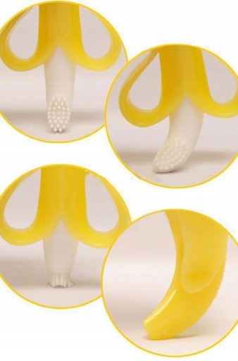 Szczoteczka treningowa została specjalnie zaprojektowana dla dzieci od 3 do 12 miesięcy.Wykonana z bezpiecznego i elastycznego silikonu, delikatnie ukoi bolesne ząbkowanie masując dziąsła malucha , jednocześnie rozwijając nawyki higieniczne. Miękki silikon zmniejsza ryzyko obrażeń. Szczoteczka posiada uchwyty, które są łatwe do utrzymania przez małe rączki dziecka, jednocześnie zapobiegając zadławieniu się.