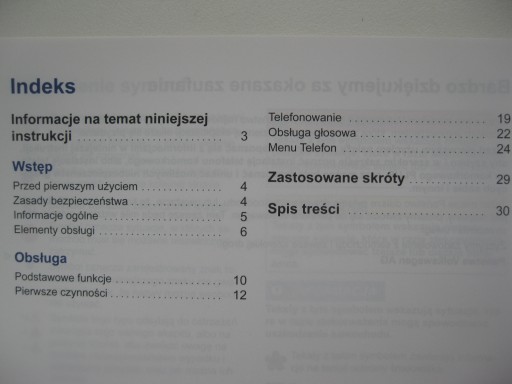 Uwaga: To jest oryginalna instrukcja VW, kolorowa w środku, nawet tytuły rozdziałów w spisie treści są aranżowane na niebiesko w celu łatwej identyfikacji zagadnień !