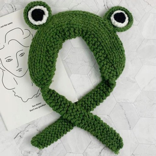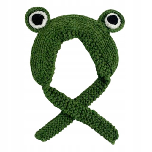 Miękka szydełkowa dzianina żaba duża czapka kreskówka jednolity kolor zielony