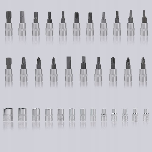 Zestaw zawiera szeroki wybór elementów, które są niezbędne w każdym warsztacie, garażu czy przy domowych naprawach. Różnorodność rozmiarów i typów kluczy nasadowych zapewnia wielofunkcyjność i uniwersalność zestawu.