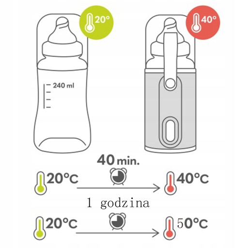 Dzięki innowacyjnej budowie podgrzewacz dopasuje się do każdego kształtu butelki. Wystarczy, że owiniesz butelkę materiałem podgrzewacza i zapniesz na szeroki rzep.