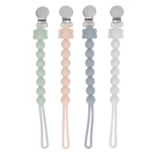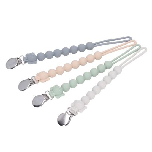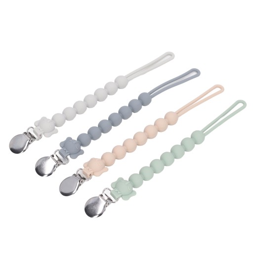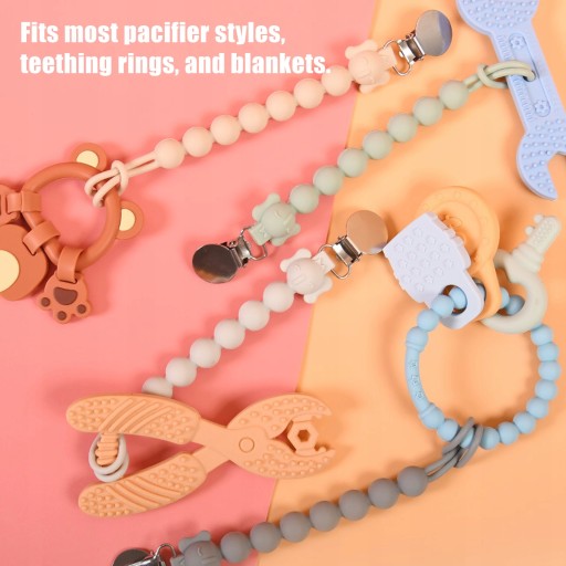 5. Miękki silikon: w sumie 4-częściowy łańcuszek do smoczka dla niemowląt, wykonany z silikonu, miękki i przyjazny dla skóry, jednoczęściowy projekt zapobiegający pękaniu koralików, które są bezpieczne w użyciu.