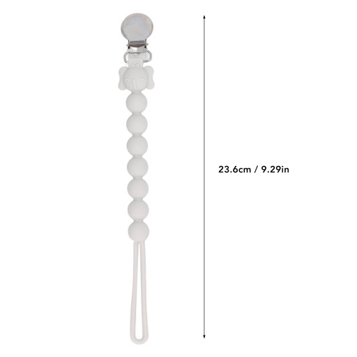 2. Uroczy słoń: silikonowy klips do smoczka przyjął ładny wzór w kształcie słonia na głowie łańcuszka z koralikami, który może przyciągnąć uwagę dziecka.