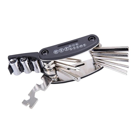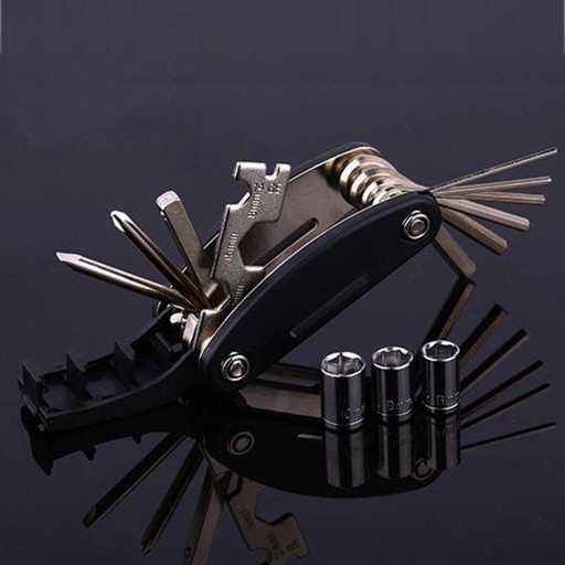 16 w 1 wielofunkcyjny zestaw narzędzi do naprawy rowerów rowerowych Może pomóc rozwią ć większość problemów z rowerem pomocą zestawu Z dobrej jakości, trwałą, pełną funkcją Klucze imbusowe: 2, 2,5, 3, 4, 5, 6 16 funkcji w jednym narzędziu: imbusowy nasadowy 8/9/10/mm, śrubokręt płaski, śrubokręt, pręt przedłużający nasadkę, płaski 8/10/15/mm, imbusowy 2/2,5/3/4/5/ 6mm, do szprych