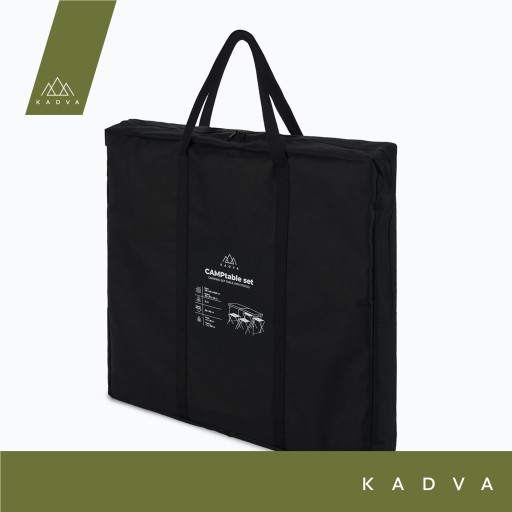 Stół KADVA CAMPtable jest niezwykle praktyczny w przechowywaniu i transporcie. Po złożeniu stół przyjmuje formę wygodnej walizki, która chroni go przed uszkodzeniami i ułatwia przenoszenie. Krzesełka można schować wewnątrz stołu, a specjalne paski przytrzymują je na miejscu, zapobiegając obijaniu się. Dzięki temu cały zestaw jest kompaktowy i łatwy do transportu, co czyni go idealnym rozwiązaniem na kemping, piknik czy inne wyjazdy na świeżym powietrzu.