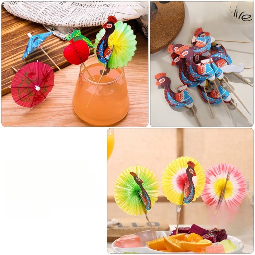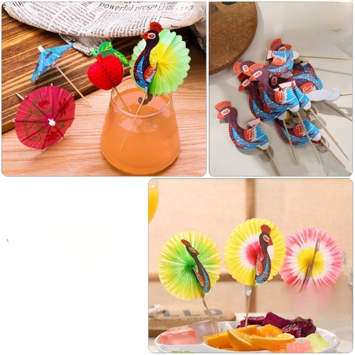 ✅100 sztuk wykałaczek do parasoli w kształcie pawia koktajlowego