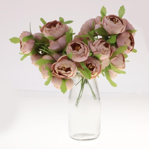 30 sztuk Sztuczny Kamelia Pąk Jedwabny Bukiet Kwiatów Wystrój Domu jasnobrązowy