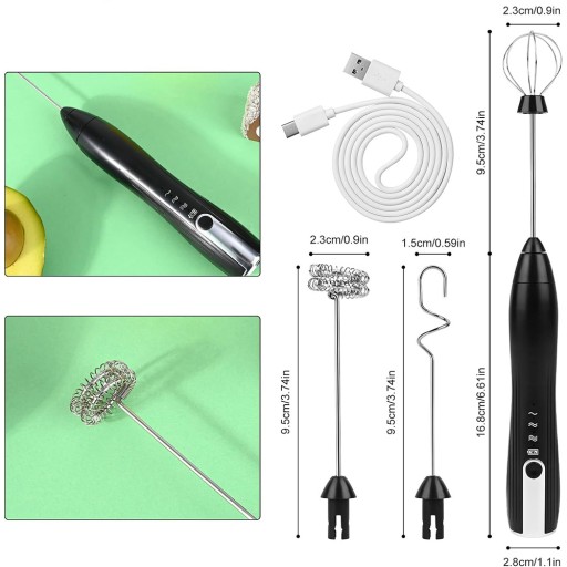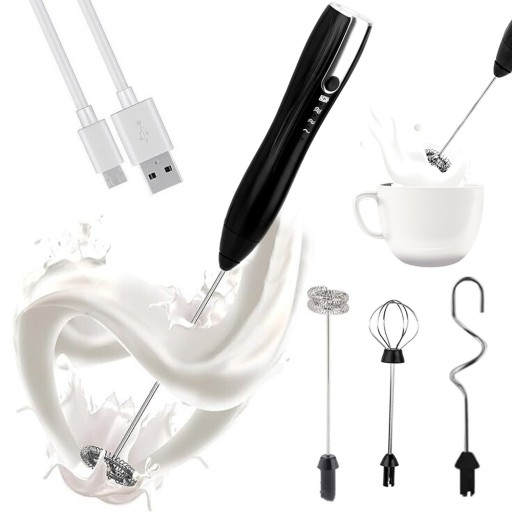 ЭЛЕКТРИЧЕСКИЙ ВСПЕНИВАТЕЛЬ, МОЛОЧНАЯ ПШЕНКА, ВЗБИВАТЕЛЬ ПЕНЫ С 3 КОНЦАМИ, ЧЕРНЫЙ