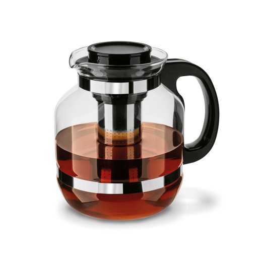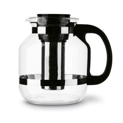 Pozostałe informacje: - dzbanek szklany, - szkło odporne na szok termiczny do 70 st., - pokrywka z tworzywa sztucznego w kolorze czarnym, - zaparzacz ze stali nierdzewnej, - wysokość dzbanka bez pokrywy: 19 cm, - średnica wlewu: 9,5 cm, - wymiary zaparzacza: 5 x 5 x 11 cm, - pojemność całkowita: 2,6 l