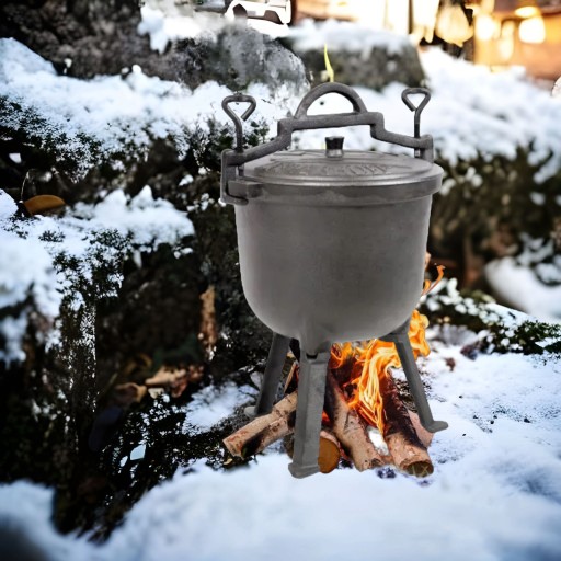 Oryginalny kociołek Meyerhoff wykonany z najwyższej jakości stopu żeliwa odpornego na najwyższe temperatury. Firma ta jako pierwsza zastosowała specjalny odpowietrznik w pokrywie, który reguluje ciśnienie wewnątrz kociołka, przez co jest on w 100% bezpieczny. Kociołek może stać bezpośrednio w ognisku, a dzięki poręcznemu uchwytowi może być zawieszony również nad ogniskiem. Produkt posiada również odkręcane nóżki, przez co kociołek można umieścić w kominku lub bezpośrednio w palenisku. Dzięki wytłoczeniu na pokrywie masz pewność, że kupujesz oryginalny i bezpieczny produkt.