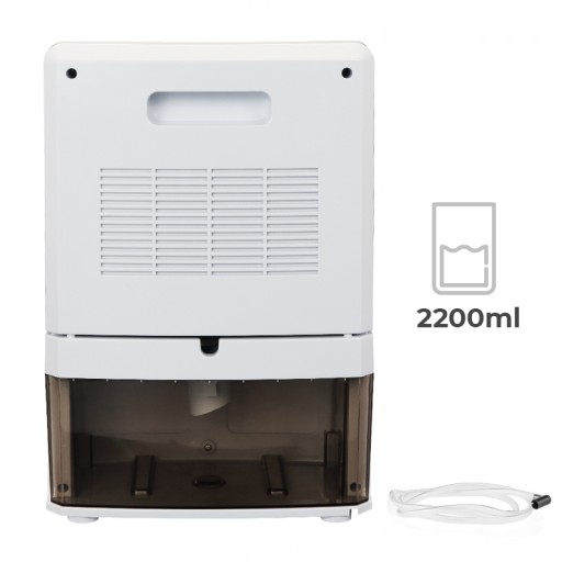 90W | Zbiornik 2200ml | Osuszanie powietrza | 700ml/24h | Oczyszczanie powietrza | CE i RoHS | Filtr UV+TiO2 | Wąż odpływowy 160cm | Przewód zasilający 300 cm | Programator czasowy
