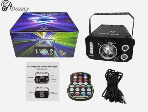 - Funkcje oświetlenia wielu imprez 3 w 1: Kolorowa kula dyskotekowa RGB + Światło stroboskopowe RGBW + 3 kombinacje wiązek RG (czerwony, zielony, czerwony i zielony)