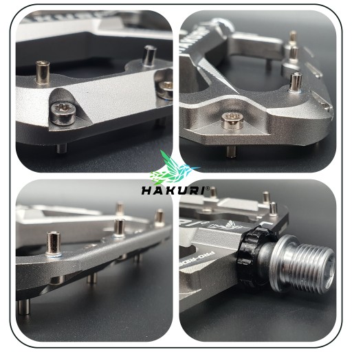 HAKURI PRO-RIDE to pedały platformowe zaprojektowane do jazdy all-mountain, DH, Enduro, Trail oraz MTB. Wykonany z aluminium korpus z ośmioma pinami na stronę zapewnia doskonałe podparcie i przyczepność.