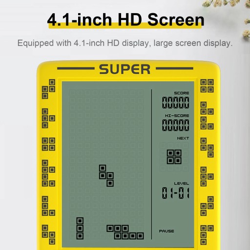 RS-100 Konsola do gier Tetris Klasyczna gra blokowa Gry logiczne Gracz Przenośna maszyna do gier Gry z klocków💕Uwaga: Zasilany jest 3 bateriami AAA (NIE dołączone), należy dokupić dodatkowo. 💕Dane techniczne: 💕Model: RS-100 💕Materiał: ABS 💕Kolor: czarny, różowy, żółty, niebieski, zielony (opcjonalnie) 💕Rozmiar elementu: około. 17,9*8,2*2,0 cm/7,04*3,22*0,78 cala Waga: 108 g/3,81 uncji 💕 Pakietu Rozmiar: 20,0*10,5*2,5 cm/7,87*4,13*0,98 cala Waga: 144 g/5,08 unz 💕package List: 💕1 * Konsola do gier Tetris