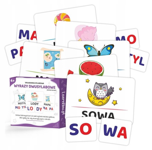 (zestaw 126 kolorowych kart, 42 wyrazy dwusylabowe)
