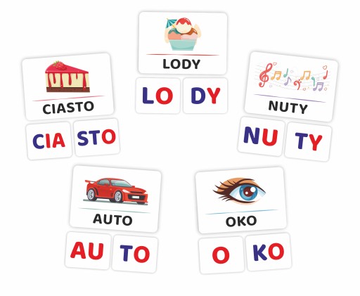 Karty podzielone na sylaby o rozmiarze: ~ 5 cm x 4 cm