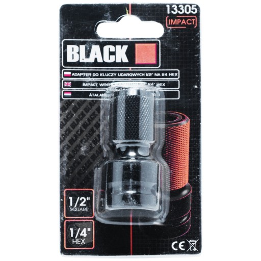 Adapter udarowy do klucza - przejściówka z 1/2" kwadrat na 1/4" HEX FIRMY BLACK.