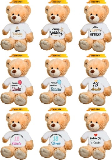 PLUSZOWY jasnobrązowy MIŚ z koszulką dla dziecka z metryczką imieniem HAFT