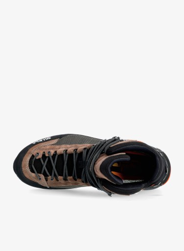 W górnej części cholewki, w okolicach ścięgna Achillesa, zastosowano elastyczny „kołnierz” Flex Collar. Pozwala on na większy zakres ruchu stawu skokowego, dzięki czemu zapewnia komfort podczas zejść, jednocześnie oferując wsparcie kostki. Charakterystycznym elementem obuwia Salewy, który pojawia się i tutaj, jest 3F System, a więc łączenie podbicia z podeszwą i piętą, dzięki czemu jak w banku masz wsparcie stopy w okolicy pięty, elastyczność i właściwe dopasowanie. Idealne dopasowanie buta aż po same palce to zasługa zaczerpniętego z butów wspinaczkowych systemu wiązania Climbing Lacing. Sznurówki są tutaj pociągnięte bardzo nisko, dzięki czemu osiągniesz precyzyjnie takie przyleganie cholewki do stopy, na jakim Ci zależy.