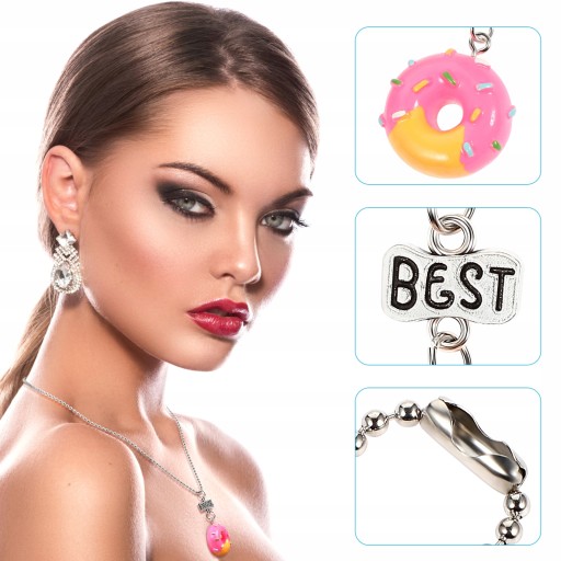 Ten wyjątkowy i kreatywny zestaw naszyjników został specjalnie zaprojektowany dla przyjaciół do wspólnego noszenia. Urocze wisiorki w kształcie pączków, z napisami „najlepszy”, „przyjaciele” i „na zawsze”, możesz nosić z dwoma przyjaciółmi, aby pokazać swoją przyjaźń. Wysokiej jakości materiał i urocza konstrukcja, również dobry prezent dla dzieci.