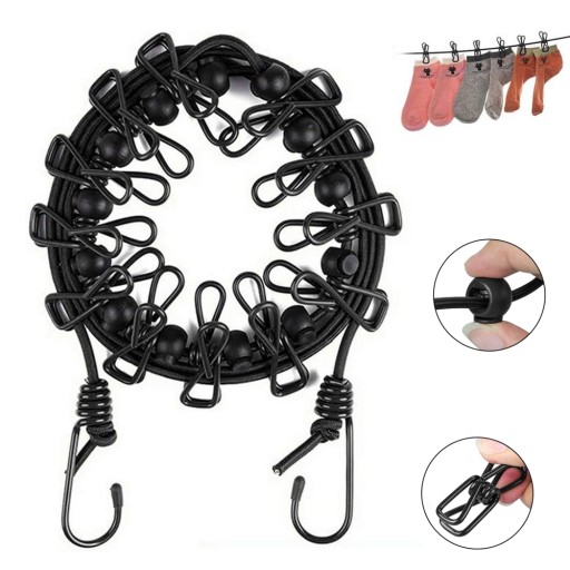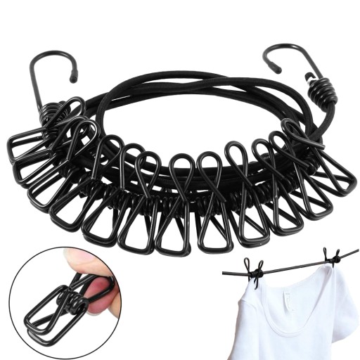 - Sznurek wyposażony jest w 12 klipsów o dużej sile zacisku, zapewniających wygodne użytkowanie.