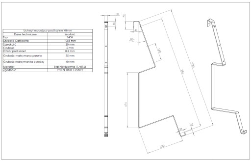 W ofercie dostępne są uchwyty pasujące na barierki o przekroju kwadratowym jak i okrągłym, a maksymalna jego szerokość na który można powiesić uchwyt wynosi 40mm lub 50mm. Każdy uchwyt jest wykonany z materiału antykorozyjnego oraz przymocowany do panelu. Dodatkowo panel jest trzymany od dołu a mikroinwerter zamocowany do niego i tym samym schowany pod panelem, takie rozwiązanie daje nam całkowite bezpieczeństwo i wygodę. Całość stanowi prosty i bezpieczny montaż w postaci powieszenia bez instalowania dodatkowych profili na powierzchniach montażowych bez ingerencji w konstrukcję balustrady. Uchwyty posiadają certyfikat spełniający wymagania budowlane pod konstrukcję fotowoltaiczną zgodnie z PN EN 1090-1,2:2012.
