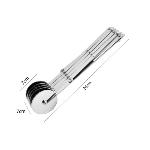 Uzyskaj równo pokrojone paski ciasta przy minimalnym wysiłku dzięki 5-kołowej krajarce do ciasta firmy Vogue. Wykonana ze stali nierdzewnej jest bardzo trwała, a także higieniczna i łatwa w użyciu. Można również rozszerzyć do 490 mm, dzięki czemu można go dostosować do potrzeb cukierniczych. Przy wadze 420 gramów ten rozszerzalny nóż do ciasta jest solidny, ale niezbyt ciężki, aby się nim posługiwać.