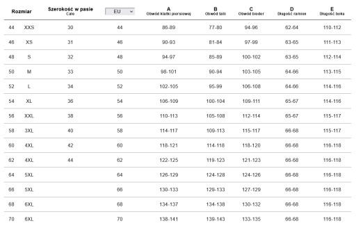 *Tabela rozmiarów jest poglądowa nie może stanowić podstawy do reklamacji.