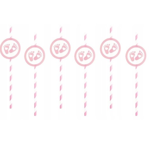 Zestaw Baby Shower "Stópki" różowe SERWETKI SŁOMKI TALERZYKI KUBECZKI