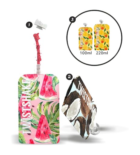 Wielorazowe saszetki Twistshake do przechowywania musów, deserów, obiadków dla dzieci domowej roboty. Saszetka o całkowitej pojemności 220 ml.
