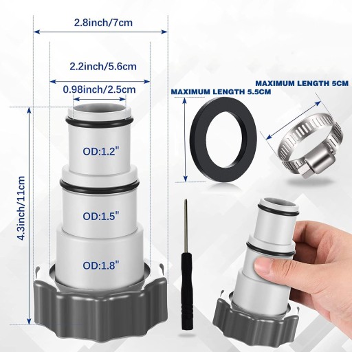✔✔✔ Opakowanie zawiera: 2 adaptery basenowe, 2 zaciski węża, 2 gumowe podkładki i 1 śrubokręt. 2 kompletne zestawy adapterów basenowych do lepszego połączenia rur wodnych, wystarczające do codziennego użytku lub wymiany.