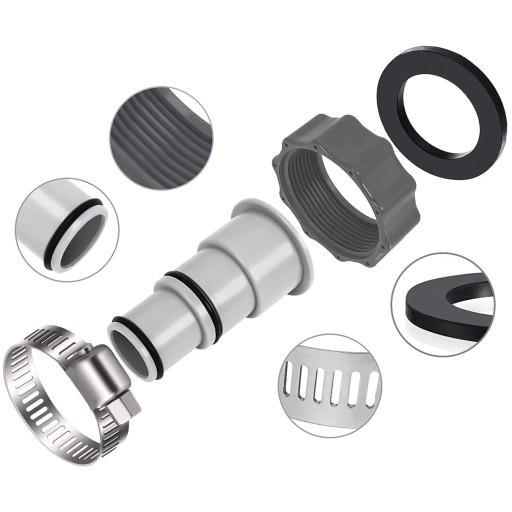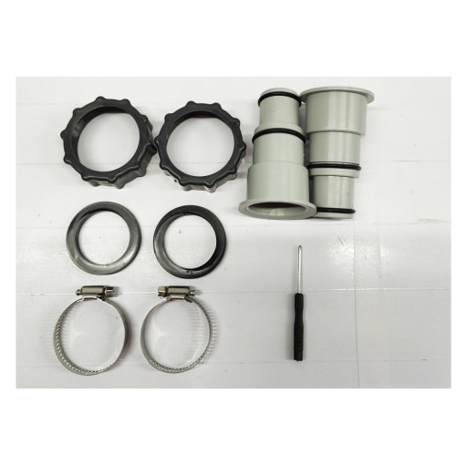 - Zestawy adapterów do węży basenowych: zestaw 2 adapterów basenowych A, wystarczająca ilość do codziennego użytku lub wymiany. 2 x zaciski węża i 2 x pierścienie uszczelniające oraz 1 x mały śrubokręt dla bardziej wodoodpornego połączenia.