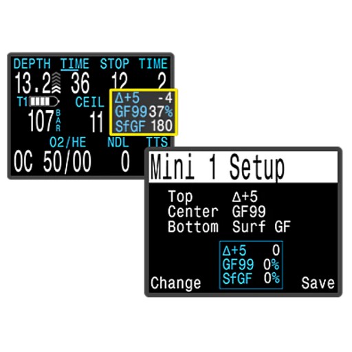- OC Recreational – tryb komputera nitroksowego, 3-gazowego, dedykowany dla prawdziwych entuzjastów nurkowania rekreacyjnego. Wyposażony w funkcję adaptacyjnego przystanku bezpieczeństwa i wykres NDL.