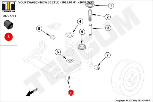 SEAT, VW BORA, FOX, GOLF, NEW BEETLE, POLO - TULEJA KOŁYSKI TYLNEGO ZAWIESZENIA LEWA / PRAWA