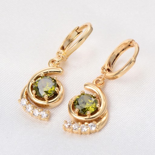 ТЕМНО-ЗЕЛЕНЫЕ ПОДВЕСНЫЕ СЕРЬГИ С ЦИРКОНИЕМ АНТИ-ШНУР