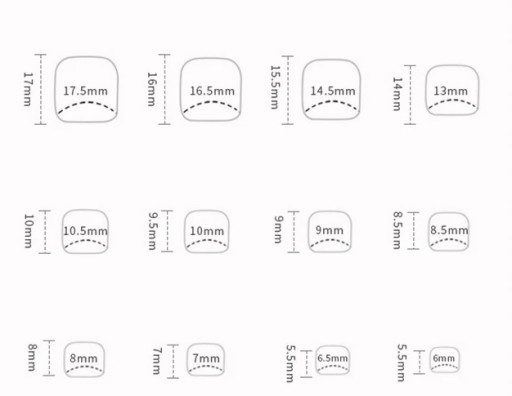 - tipsy 24 sztuki w 12 różnych rozmiarach - bez względu na rozmiar paznokcia, możesz wybrać najbardziej odpowiedni dla siebie sztuczny paznokieć,