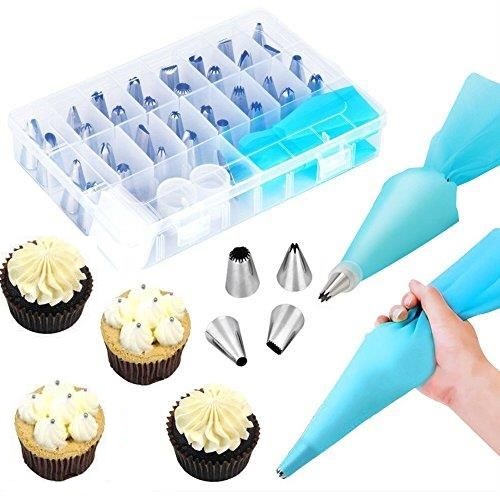 Dekorator do tortów i ciast! Doskonały zestaw składający się z 2 przejściówek oraz aż 22 różnorodnych, stalowych końcówek. Dodatkowo w zestawie silikonowy rękaw do ozdabiania naszych słodkości. Z jego pomocą pięknie udekorujesz torty, ciasta oraz talerze na których serwujesz dania! Można go bezpiecznie myć w zmywarce i użytkować z żywnością!