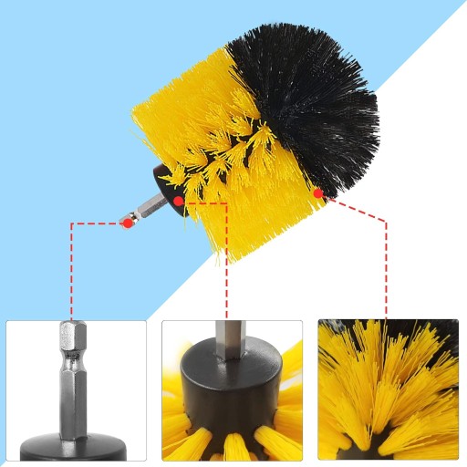 Szczotki są idealne do usuwania trudnych zabrudzeń z różnych powierzchni, od felg, przez dywaniki, aż po tapicerkę i płytki ceramiczne. Średniej twardości nylonowe włosie skutecznie usuwa brud, rdzę i osady, przyspieszając proces czyszczenia. Wykorzystanie wkrętarki znacznie skróci czas potrzebny na uporanie się z nawet najcięższym, zaschniętym brudem. Bez problemu dobierzesz odpowiednią szczotkę do danej powierzchni. Szczotki są wyposażone w uniwersalny adapter hex, przez co pasują do praktycznie każdej wkrętarki.