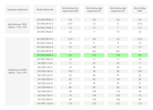 (urządzenie przeznaczone jest pracy z asynchronicznymi silnikami trójfazowymi 230V/400V i 400V/690V do mocy ...5,5kW)