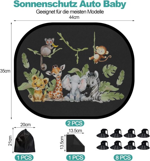- ✅Ładne wzornictwo: Osłony przeciwsłoneczne ozdobione motywami zwierzęcymi, takimi jak słonie i żyrafy, przyciągają uwagę dzieci, zapewniając im rozrywkę i stymulując zdolności poznawcze podczas jazdy.