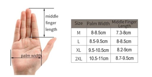 Aby odpowiednio dobrać rozmiar należy zmierzyć dłoń tak jak ukazuje to obrazek obok.