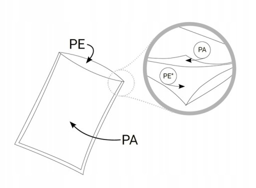 - Materiał: Poliamid 25μm (PA) i polietylen (PE) 80μm